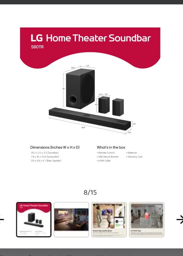 S80TR LG Home Theater Soundbar with Dolby Atmos® and Rear Speakers, 5.1.3 channel, Best OLED matching