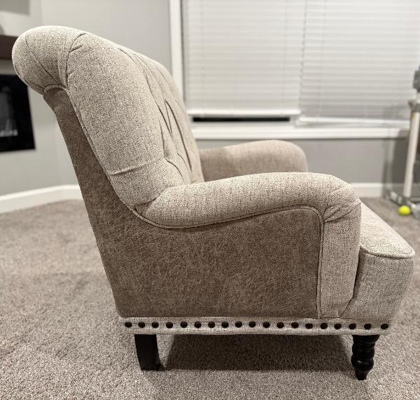 Victoria Accent Chair Ivory Inside/Taupe Back Fabric/Leather from HOM Furniture.