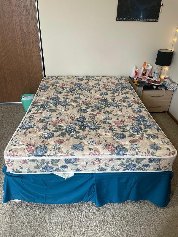 Revamp your bedroom with this gorgeous floral full-size mattress set, including a spring box, bedframe and mattress cover! Elevate your sleeping experience while adding a touch of style to your space.